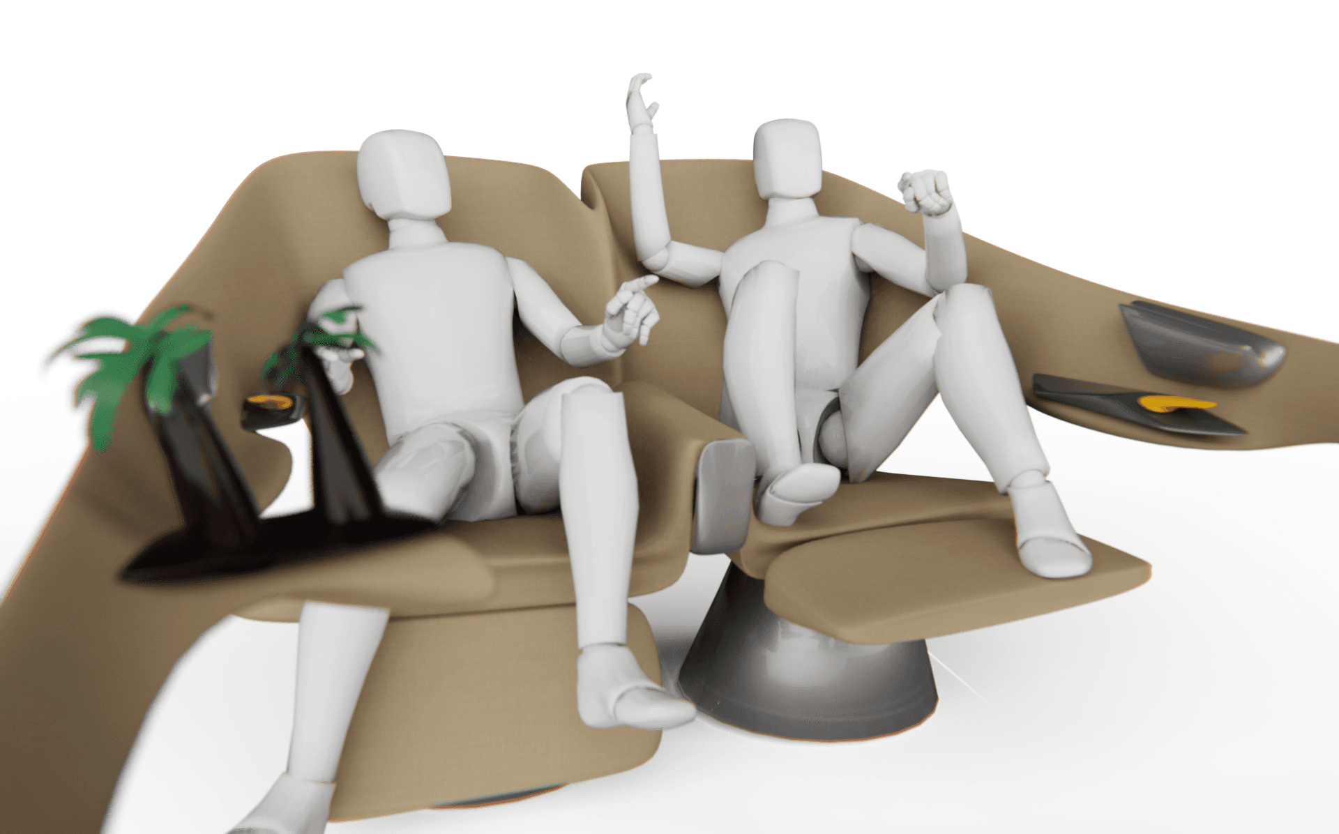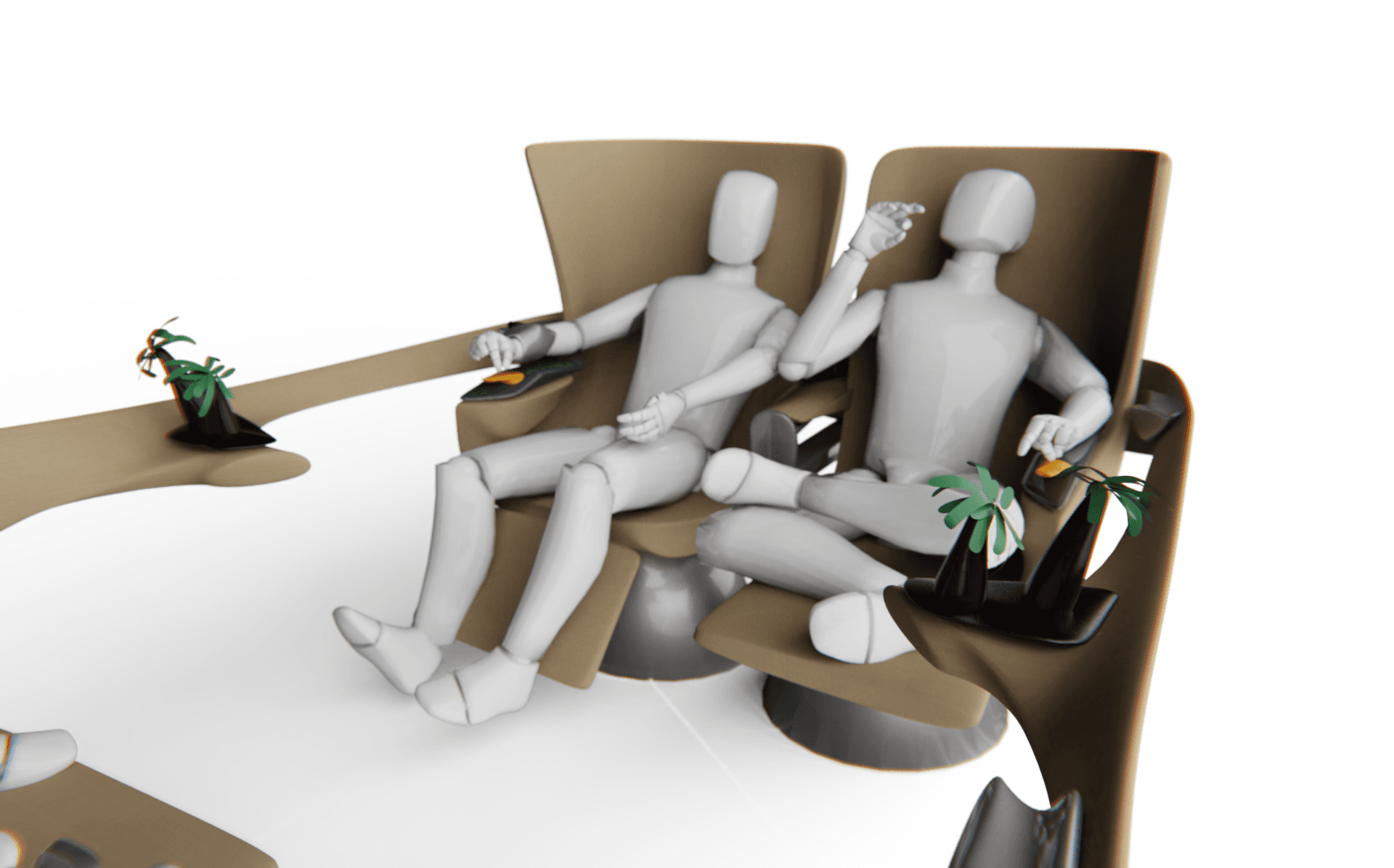 Elements like privacy shields, sound-absorbing surfaces, and gesture-controlled VR visors defined how users could personalize their atmosphere. Health and wellbeing were also integrated through ideas such as auto health assessments, supplement dispensers, and vitamin infusions.