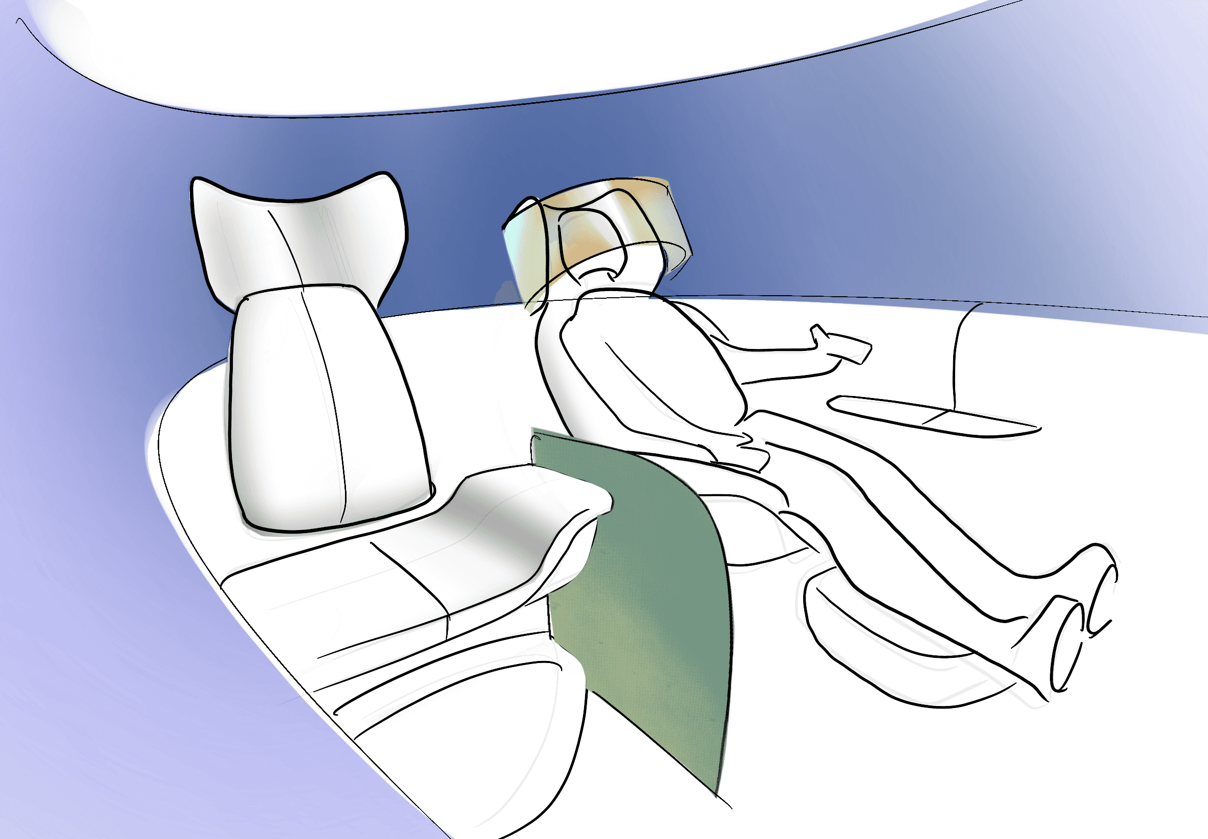 Oasis explores how future autonomous vehicles could become personal sanctuaries rather than just transport spaces. Set in 2060, the project rethinks the car interior as a retreat for wellbeing, privacy, and mental recharge during short intercity commutes. The goal was to create a space that feels calm, adaptive, and restorative.