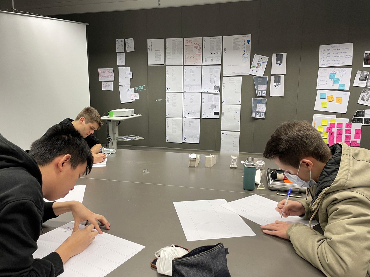 Rapid CAD modeling and parametric surface studies shaped the final direction: a tactile shell made from recycled Ocean Plastics, with animated micro-panels that respond to air movement and human presence. Lo-fi paper prototypes were also employed to test interaction methods.