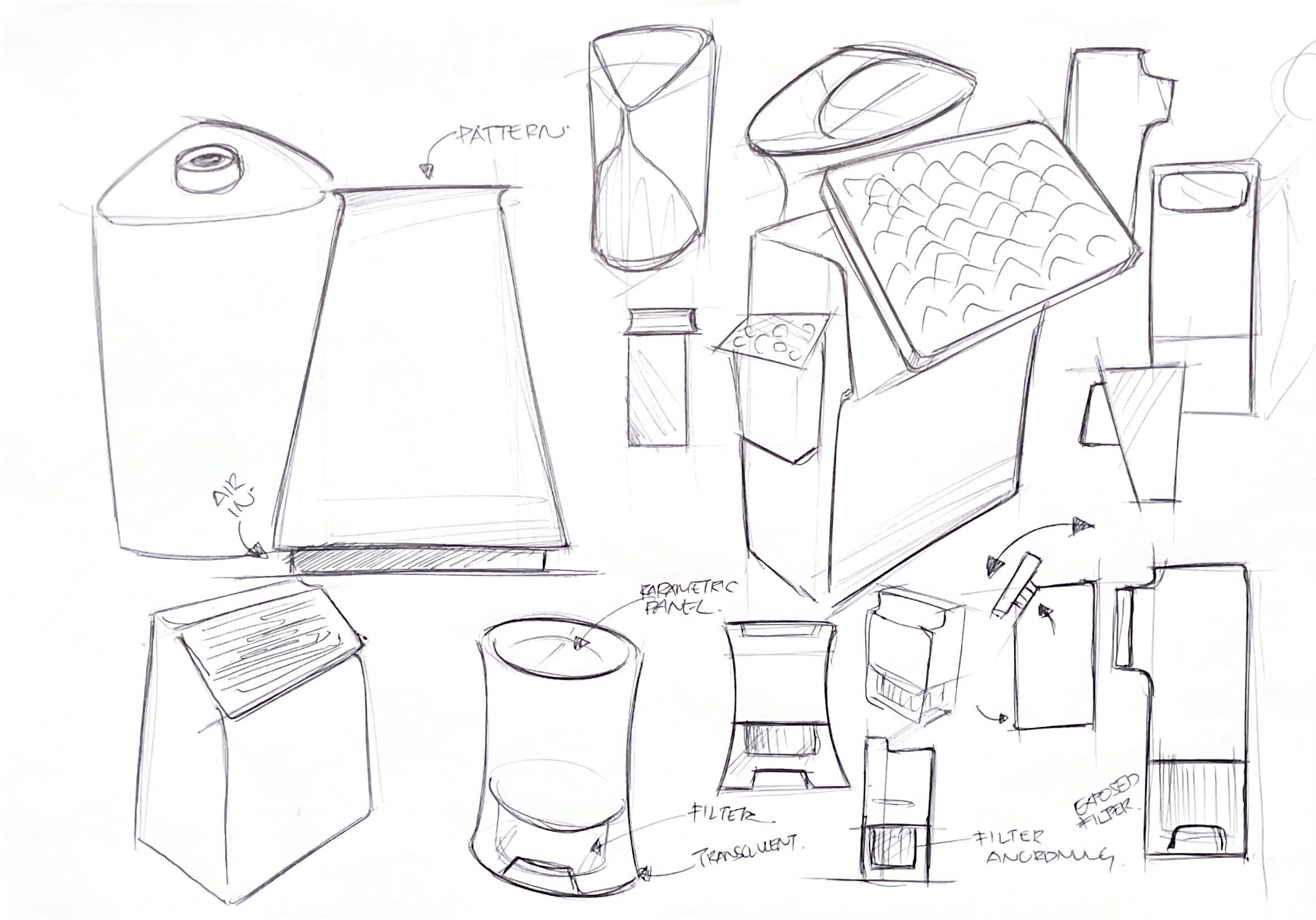The concept grew from material and behavioral research on indoor air and human perception. Through mapping pollutants and studying existing purifiers, the idea shifted from performance-driven to experience-driven design.