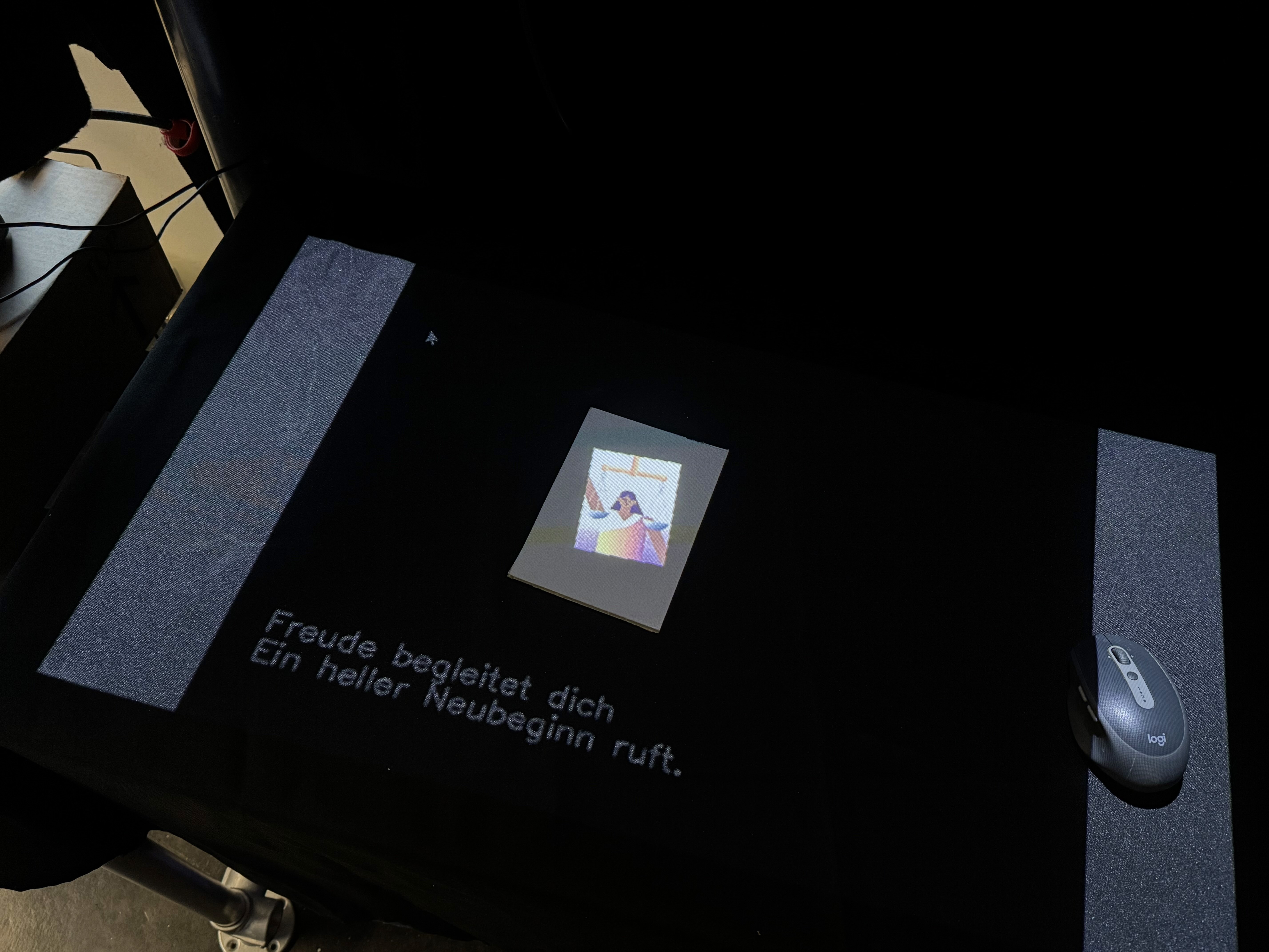 Virtual Tarot explores the relationship between intuition, technology, and belief. The installation reimagines fortune-telling through the lens of artificial intelligence, where emotion becomes data and prediction becomes experience.