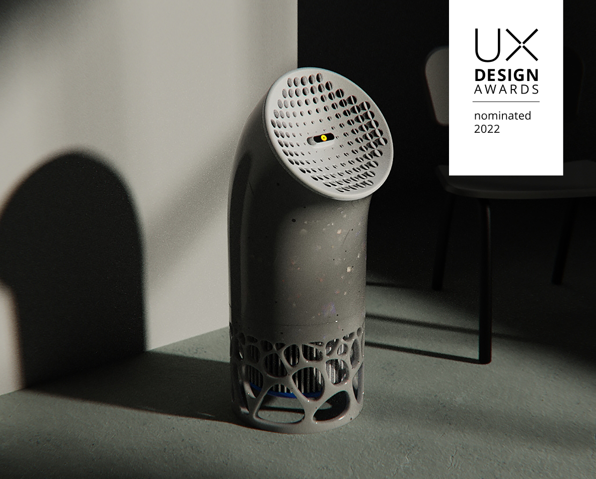 The concept grew from material and behavioral research on indoor air and human perception. Through mapping pollutants and studying existing purifiers, the idea shifted from performance-driven to experience-driven design.